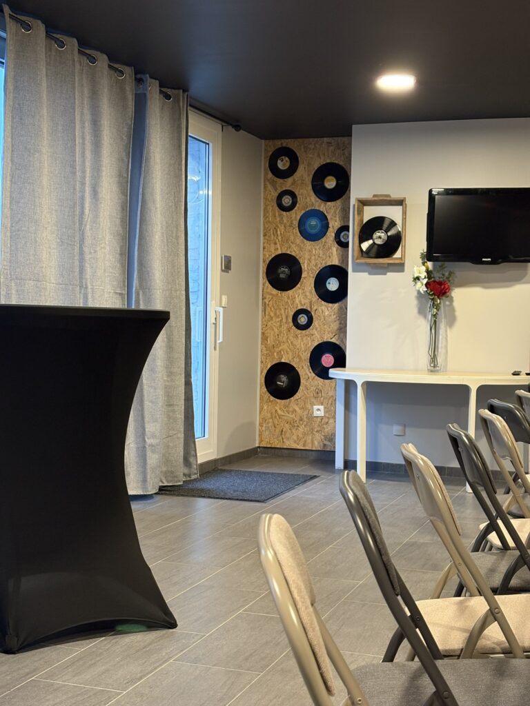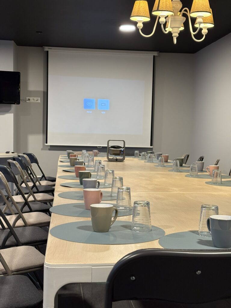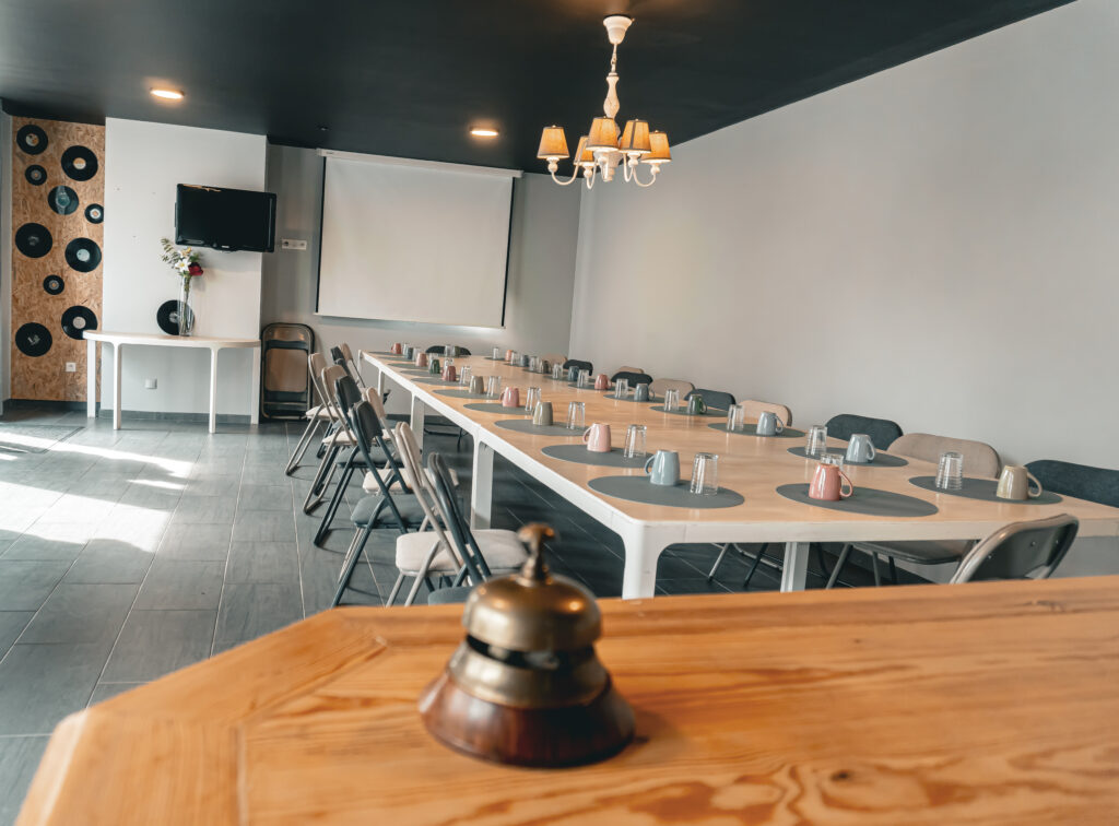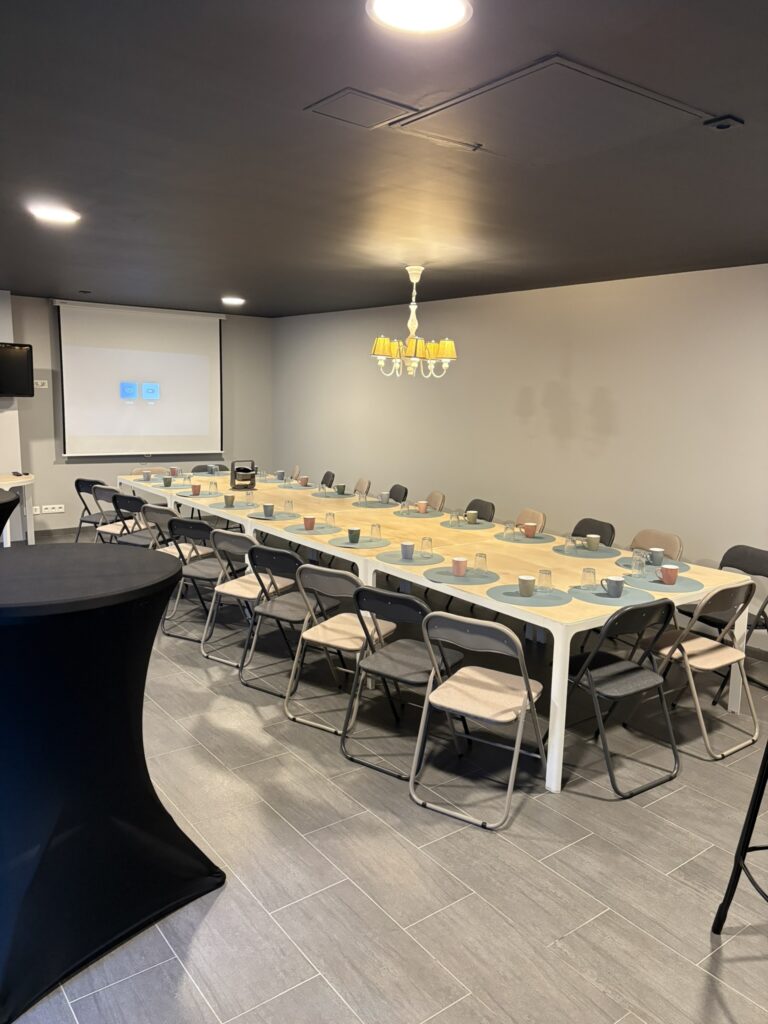 Il peut accueillir jusqu’à 30 personnes assises et s’adapte aussi bien aux réunions professionnelles, séminaires, ateliers, formations ou temps de réflexion en équipe.