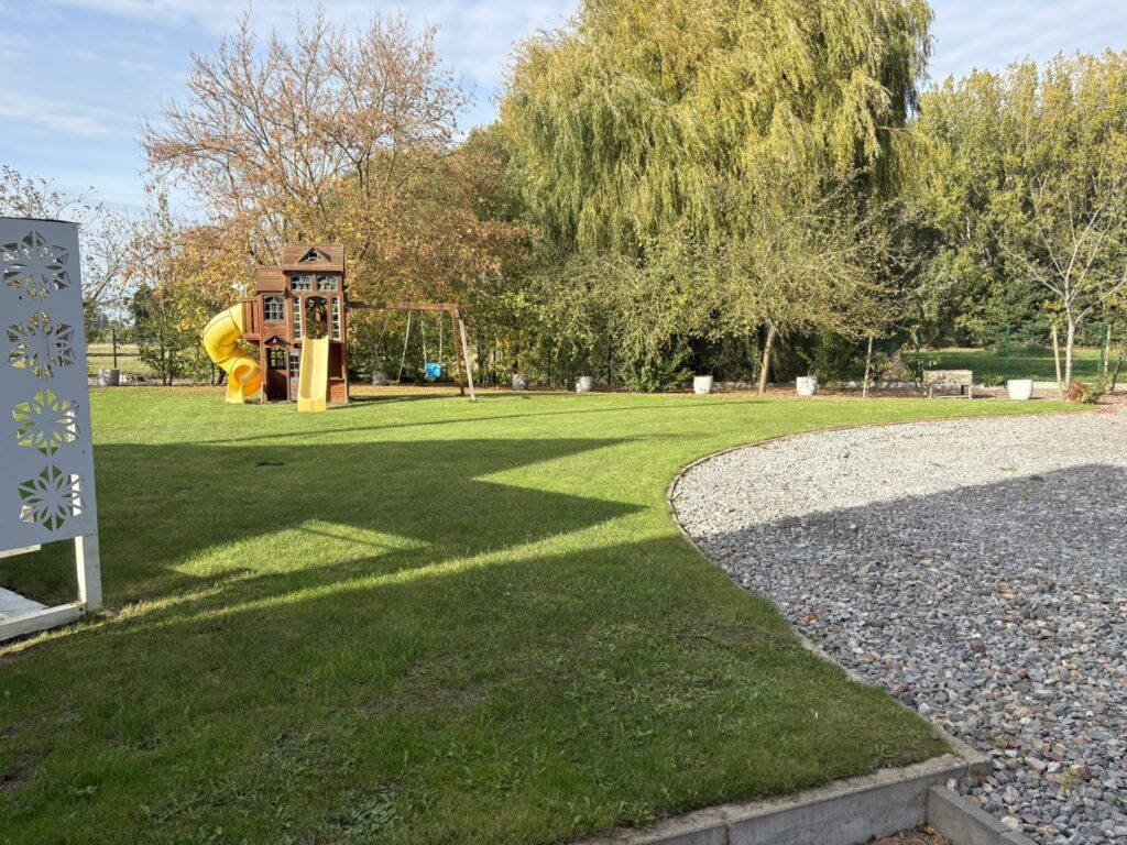 À l’extérieur, vous profitez d’une terrasse et d’un jardin, parfaits pour les repas en plein air et les moments de détente.